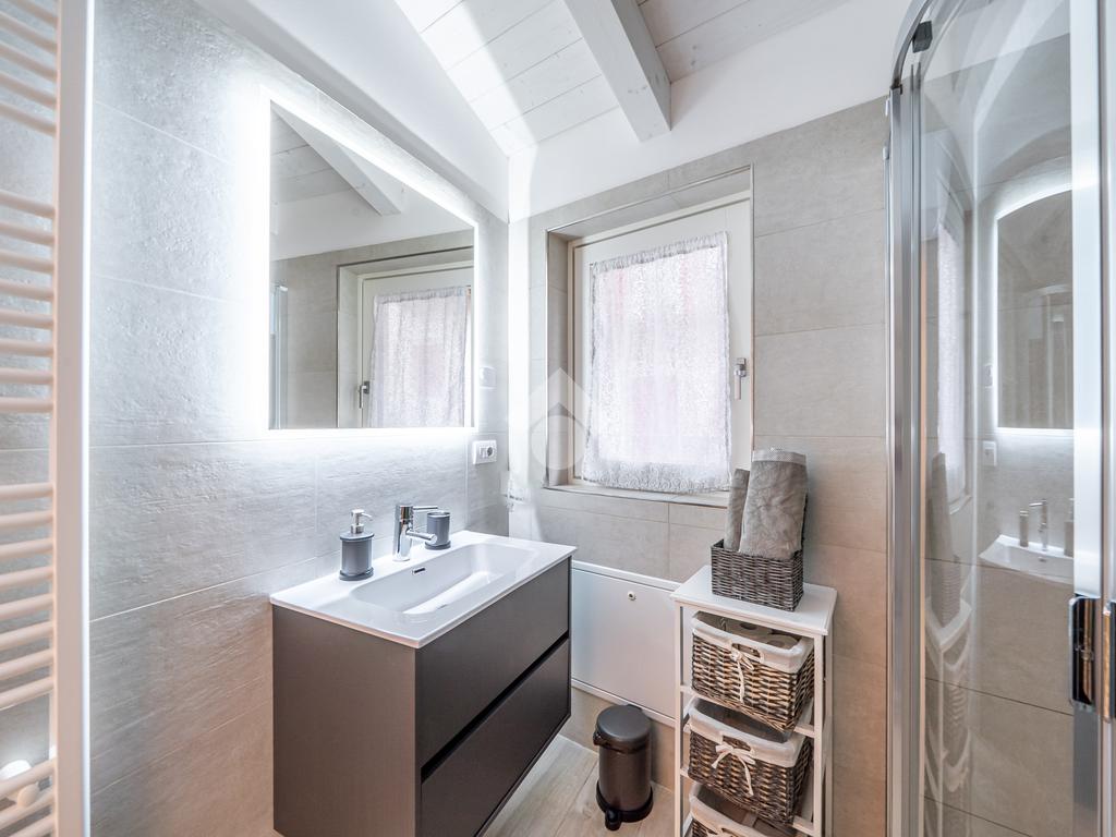Il bagno è finestrato e ben accessoriato con una doccia moderna, garantendo comfort e praticità. La presenza di una finestra assicura un'ottima ventilazione naturale e luminosità.