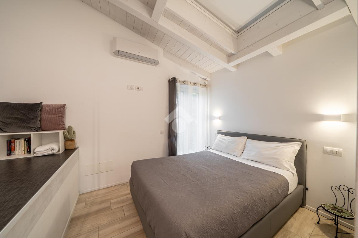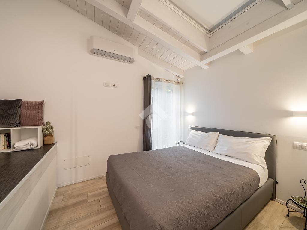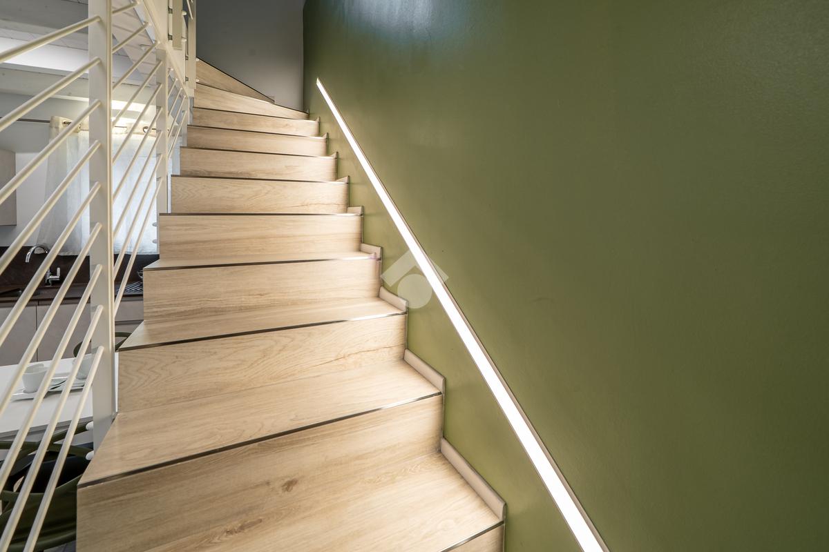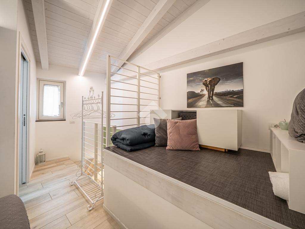 La scala interna conduce alla zona notte, dove troviamo la camera da letto matrimoniale. Questa stanza è dotata di una portafinestra che consente l'accesso diretto al balcone, offrendo uno spazio intimo per godersi l'aria fresca.