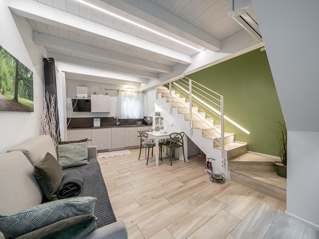 La vera unicità di questa soluzione risiede nella sua posizione privilegiata: situata in una porzioncina di casa, l'appartamento è libero su tre lati, garantendo luminosità e privacy. Al piano terra, la zona giorno vi dà il benvenuto con un salotto spazioso e luminoso, perfetto per momenti di relax e convivialità. La cucina, posizionata a parete, è un esempio di funzionalità e stile, attentamente attrezzata e organizzata per soddisfare ogni esigenza culinaria.