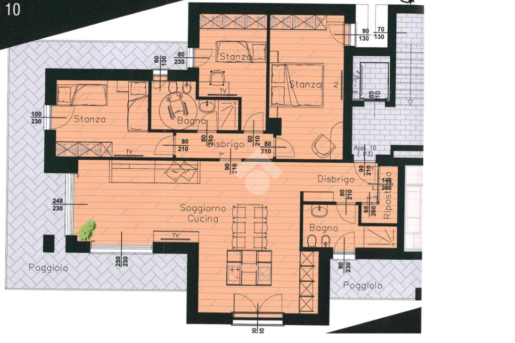 Le tre camere da letto offrono spazio e tranquillità, mentre i due servizi finestrati aggiungono un tocco di funzionalità e comfort.