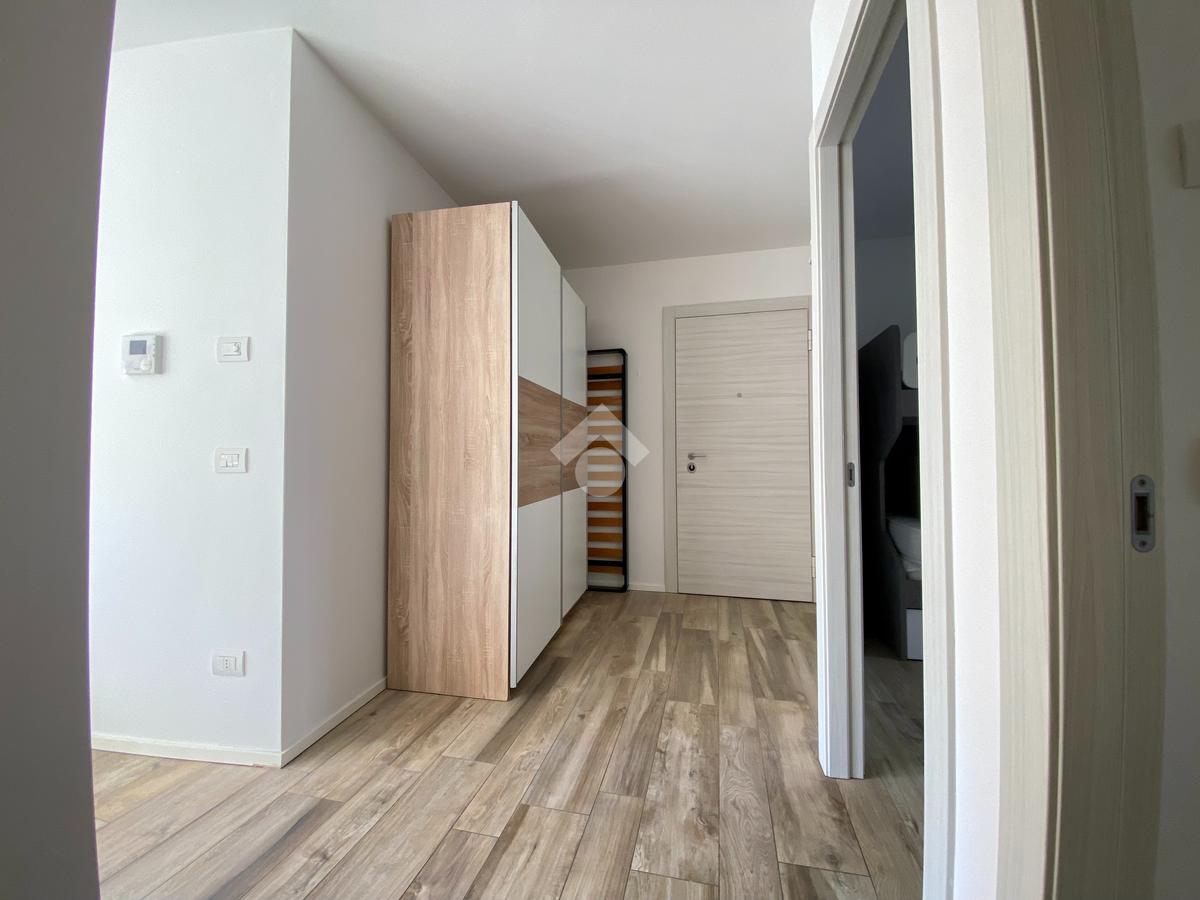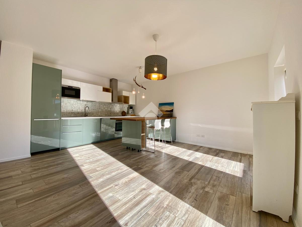 Situato al primo piano, l'appartamento si apre su un ingresso accogliente che conduce a una luminosa zona giorno open space. Da qui, potrete accedere al balcone esposto a est, che offre una splendida vista. L'appartamento dispone di una camera matrimoniale e una camera singola, entrambe progettate per garantire il massimo comfort. Il bagno, moderno e spazioso, è dotato di un'ampia doccia, ideale per momenti di relax.