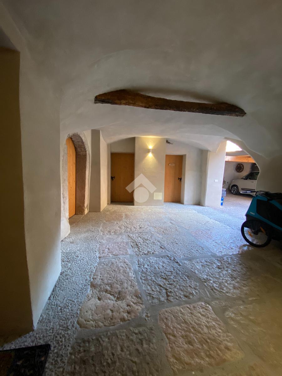 La ristrutturazione del 2017 ha saputo mantenere il fascino storico dell'edificio, conservando la pavimentazione originale nel portico d'ingresso. Il cortile privato, interamente rivestito in porfido, aggiunge un tocco di eleganza e raffinatezza.